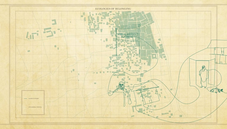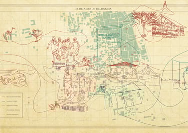 In our engaged research as part of the Critical Urbanisms program at the University of Basel, we used drawings and maps to explore the ecological relationality of belonging. Someone’s sense of belonging cannot be easily pinned on a map or represented in a drawing, yet the practice of drawing together with our research participants allowed us to grasp the complex links between places and people.